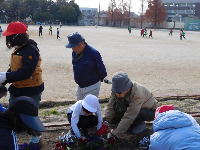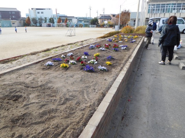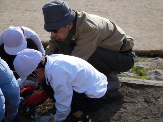 棚尾再青会のみなさんと一緒に花の苗を植えました。