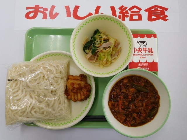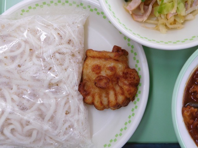 牛乳、ソフトめん、肉みそかけ、たこちゃん焼き、切干大根サラダ