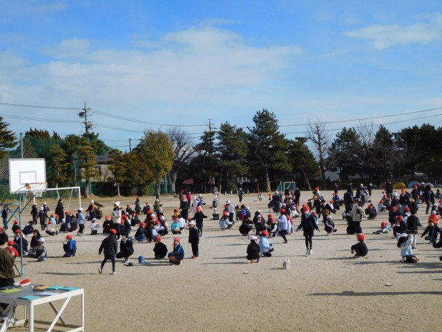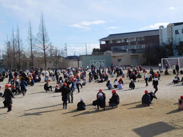 1年生から6年生までを縦割りにしてグループを作り、なわとびを楽しみました。