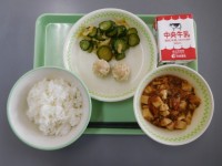 牛乳、ごはん、鰆のさっぱりソース、タッカルビ、わかめスープ