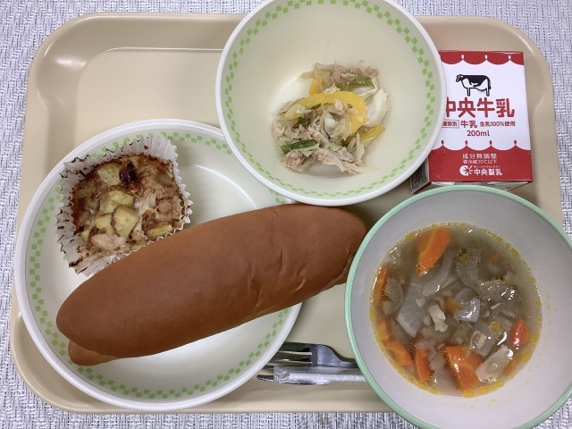 秋においしい食べ物といえば、さつまいもを思い浮かべる人も多いのではないでしょうか。今日は、「鶏肉とさつまいものマヨネーズグラタン風」に さつまいもが使われています。さつまいもは、やさしい甘さが おいしいですね。実は、とれたてのさつまいもは それほど甘くありません。とってから 少し時間をおくことで、どんどん甘くなっていきます。気になる人は、試してみてもいいですね。