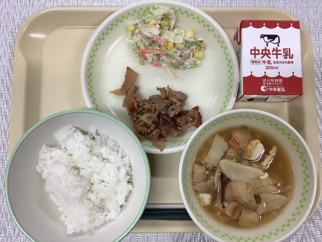 「豚肉のいちじくソース」は、今月の新メニューです。いちじくは、夏から秋にかけて おいしくなる果物です。みなさんが住んでいる碧南市や、お隣の安城市でよく とれます。今日のソースには、いちじくジャムを使っています。また、ジャムの他にも 白しょうゆやレモンの汁を使い、甘い味と さわやかな味のバランスが とてもよい料理です。