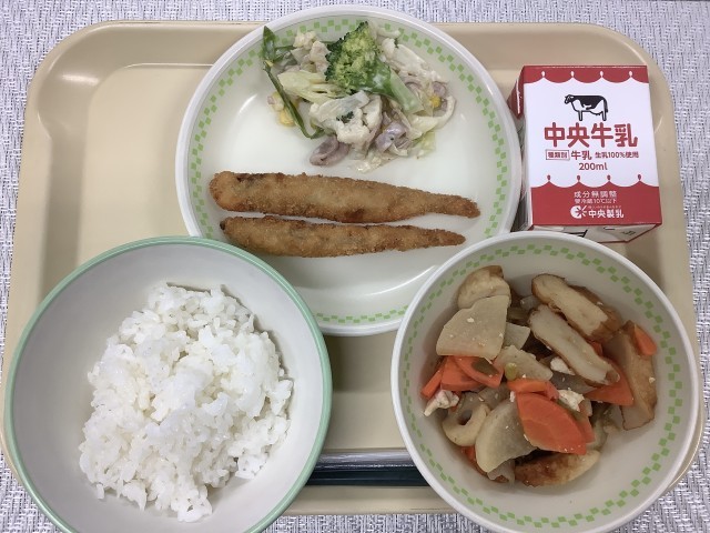 今日は、花野菜のブロッコリーやカリフラワーを使ったサラダです。花野菜は、さまざまな種類があります。紫色のブロッコリーや茎が とても長いブロッコリー、黄色のカリフラワーがあるそうです。また、角が たくさんついているような形の「ロマネスコ」という種類の花野菜もあります。食品売り場や図鑑などで調べてみるのも いいですね。