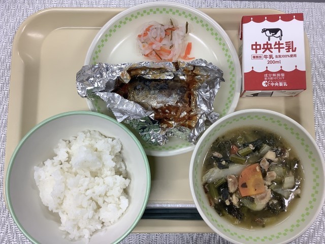 今日から、3学期の給食が始まりました。3学期最初の給食は、鏡開きの献立です。鏡開きは、正月に お供えした鏡餅を割って食べる行事です。鏡餅には神様がいると いわれています。鏡餅を食べることで 神様から力をもらい、新しい1年を健康にすごすことが できるそうです。給食では、白玉団子を もちに見立てて雑煮に しました。
