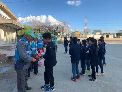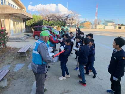 いつも、1年生に付き添い、安全に下校できるようにお手伝いしてくださっているスクールガードさんに、感謝の気持ちを込めて、お米をプレゼントしました。