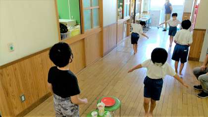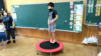 線の上をまっすぐ歩いたり、トランポリンで跳ねる練習をしました。練習の成果が運動会でいかせるといいですね。
