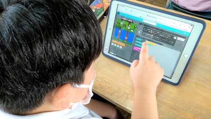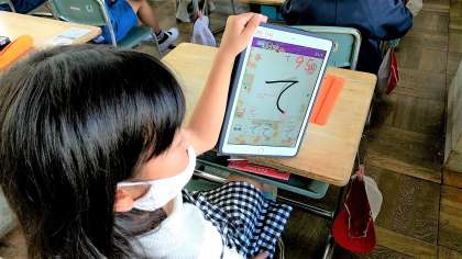 「て」を書いたら95点が出ました。すごいです。プログラミングの勉強もタブレットを使ってすすめています。