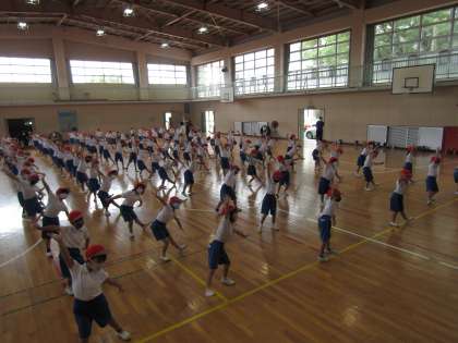 きゃりーぱみゅぱみゅの「きみに100%」に合わせて、一生懸命ダンスを覚えています。学年で心を一つに合わせて、ダンスを仕上げていきたいと思います。