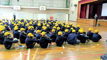 東中の校長先生からは、やる気が大切だと話がありました。担当の先生からは学校行事の紹介がありました。