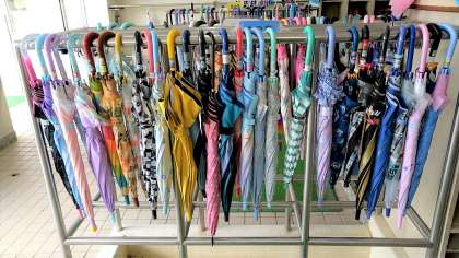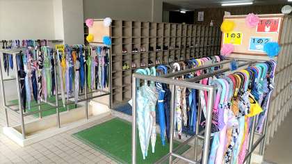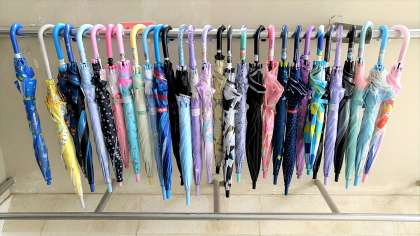今日は雨の予報です。色とりどりの傘が並んでいます。これなら間違えることも少ないかな?