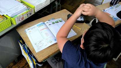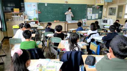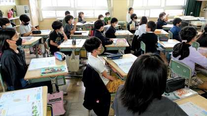 先生が用意した牛乳パックにツルレイシの種をまきました。さあ、芽は出てくるかな?