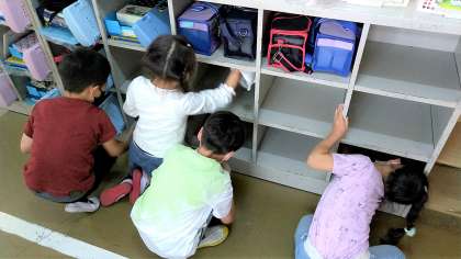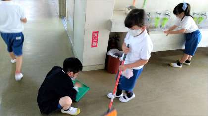 掃除の時間は毎日、13時25分から40分までの15分間です。13時37分に道具を片付ける音楽がなります。