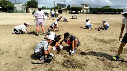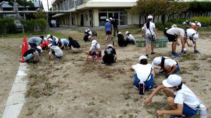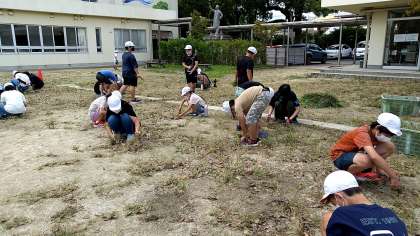 掃除の時間にグランドの草取りをしました。今朝は雨が降ったので、取りやすかったかな。