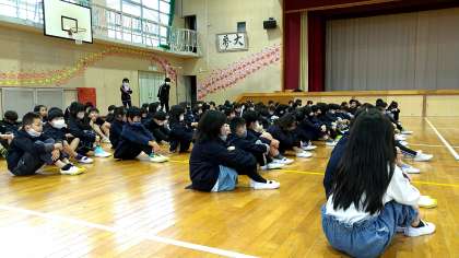 体育館に集まり、学年集会を行いました。それぞれの先生からの話がありました。みんな、しっかり話が聞けました。