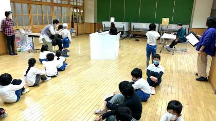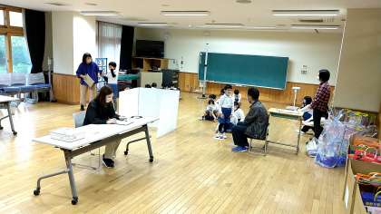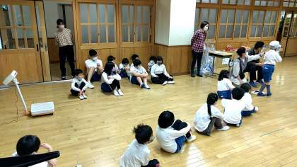 多目的ホールで視力検査を行いました。検査を待っているときの態度がとても立派でした。