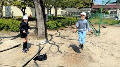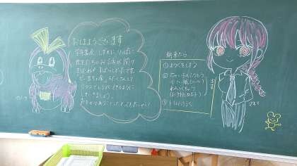 3年生の教室に先生の描いた素敵なイラストがありました。2枚目の写真は3重跳びに挑戦している子です。すごいですね。