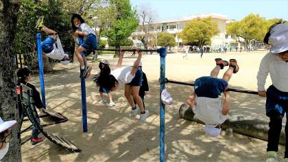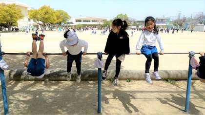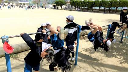 今年から業間の時間(2時間目と3時間目の間の休み時間)が25分になりました。みんな、元気よく遊んでいます。