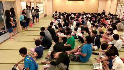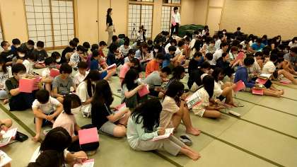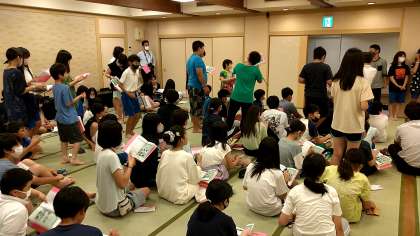 夜の学年レクのスタートが始まりました。はじめは、キープ・スマイリング・ビンゴです。