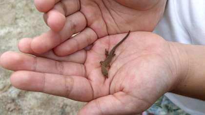 「校長先生、見つけたよ。」と3年生の女の子と男の子が見せてくれました。ヤモリは女の先生にも見せていましたが、先生は苦手そうでした・・。