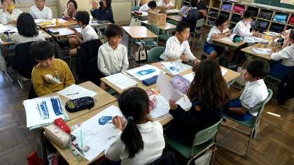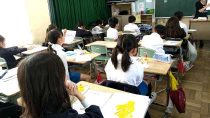 試し刷りした作品をお互いに見せ合い、パワーアップした作品になるように話し合いました。みんな、やる気まんまんでした。