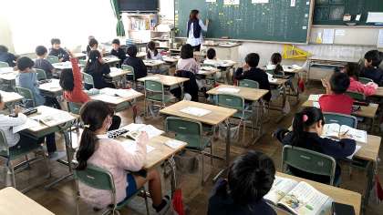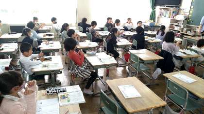 道徳「黄色いベンチ」で、みんなでつかうものは、どんなことに気をつけてつかうのか、考えました。職場体験の東中生も一緒に勉強しました。