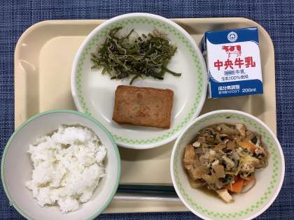 今日は、白菜を使った「鶏なべ」でした。白菜には、カリウムやビタミンCなどが多くふくまれています。たっぷりの白菜も、加熱するとかさが減って食べやすくなりました。