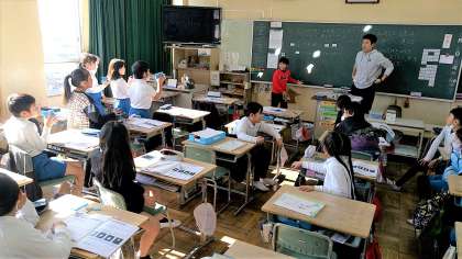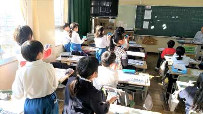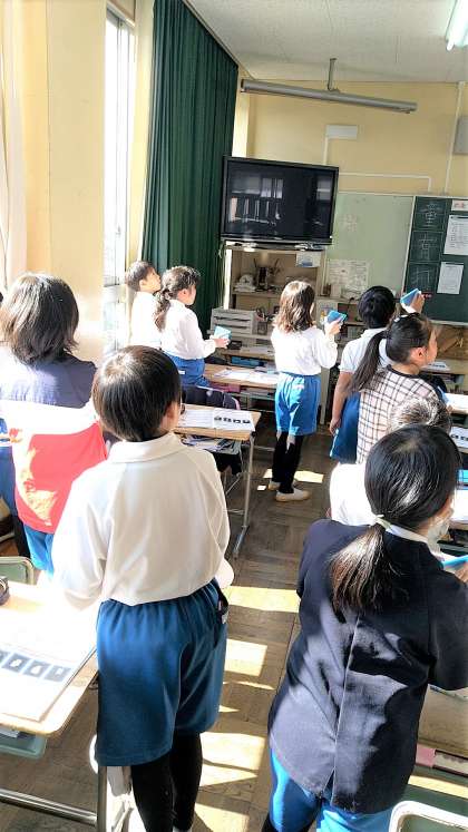 太陽光をカガミで反射させ、黒板にあてる実験をしました。光がまっすぐすすむことはわかったかな。