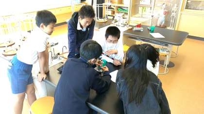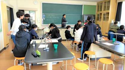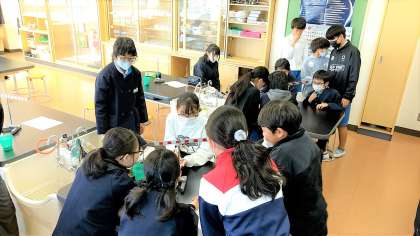 自分の考えた実験をグループの子に見せました。どんなおもりを、どこにつるすとつり合うのか、自分の言葉で説明しました。