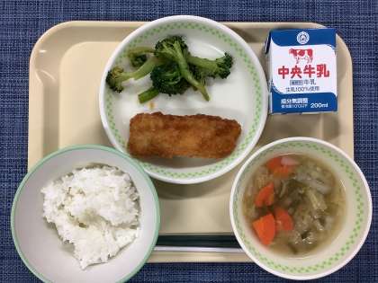 「ブロッコリーのごまあえ」には、たくさんのブロッコリーを使っています。ブロッコリーは機械では切れないので、調理員さんが手作業で子房に分けています。ブロッコリーのごまあえが入っていた容器は、からっぽになっているクラスが多かったです。