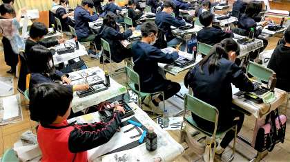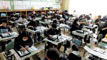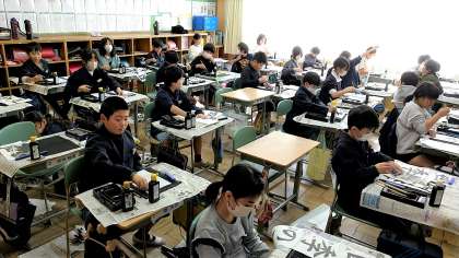 3時間目は競書会です。みんな、一言も話をせずに、集中して書いています。よい作品ができそうです。
