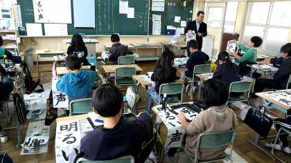 習字「明るい声」(4年生)