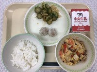 今日は、愛知県産の れんこんを炒めて きんぴらを作りました。みなさんは、れんこんが花の茎の部分だということを知っていますか?実は、れんこんは蓮という花の茎の部分を食べる野菜です。蓮の花は水の上で咲きますが、れんこんは その下にある土の中で育ちます。れんこんに開いている穴は、土の中でも空気が通りやすくするための ものです。シャキシャキとした歯ごたえで かみごたえが あるので、食べるときは よくかんでくださいね。