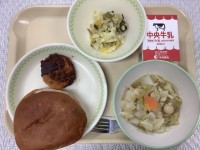 ★☆★ 今日の献立 ★☆★サンドイッチバンズパン 牛乳みそかつ大根のポトフ野菜ソ...